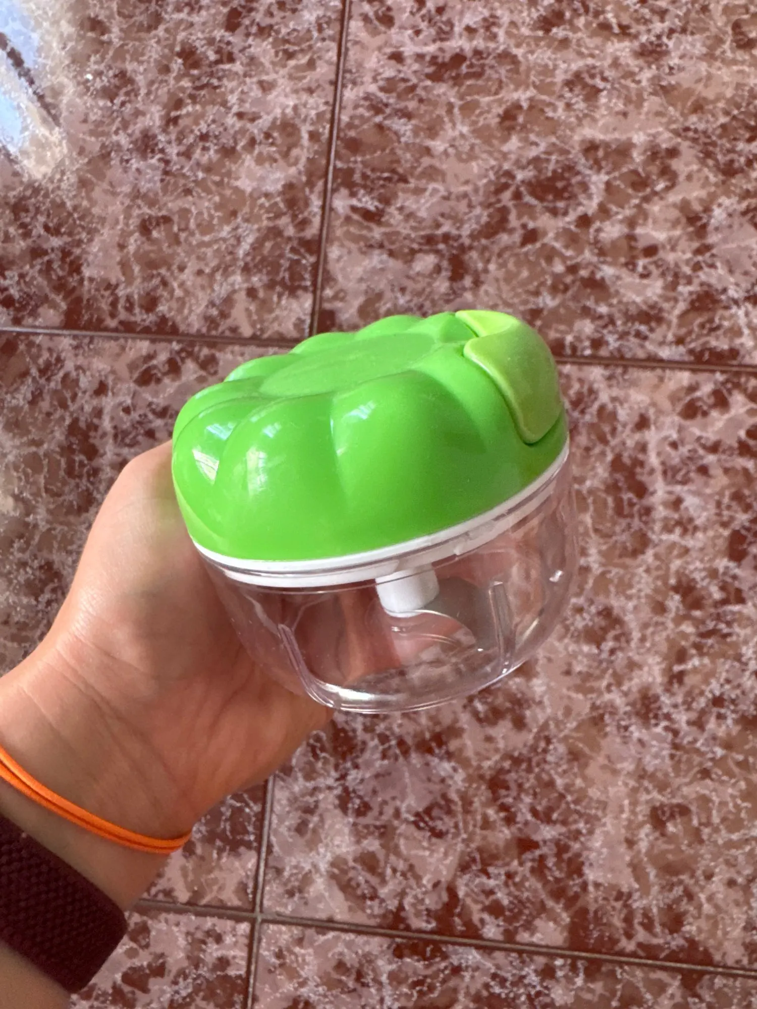 I loved it, this is a new model that is more durable and just as functional, very, very practical and useful, no tears when chopping onions, quick and handy to use, just be very careful because the blades are very sharp. Good seller and good Aliexpress.