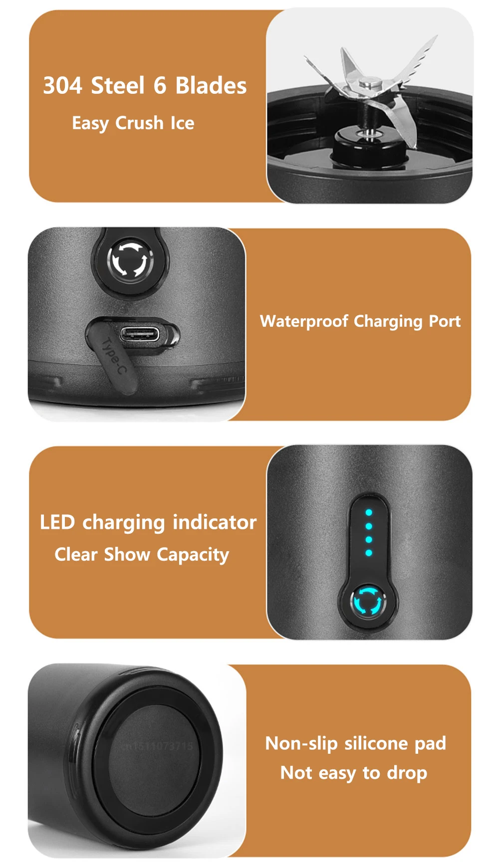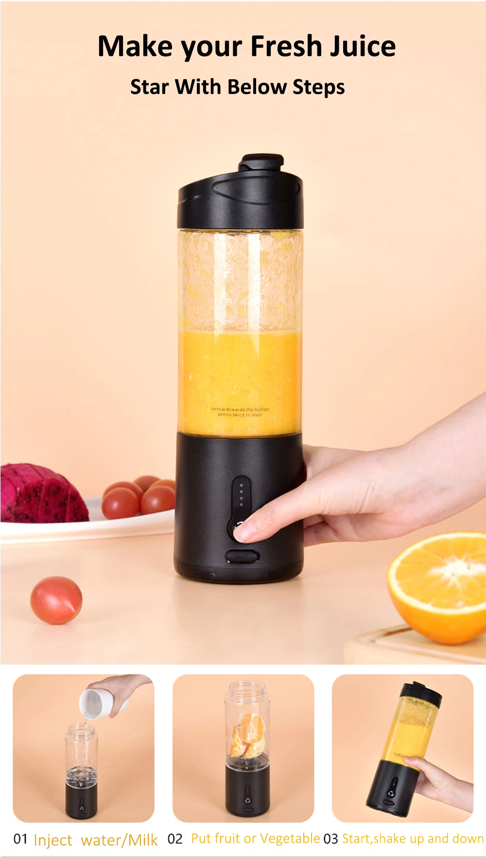 Portable Bottle Blender Electric Fresh Juice Blender Mini Fruit Juicer Blender Rechargeable Smoothie Mixer Juice Making Machine