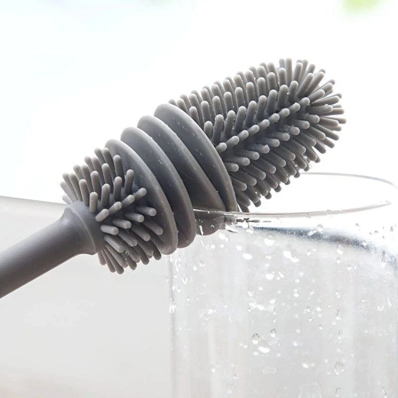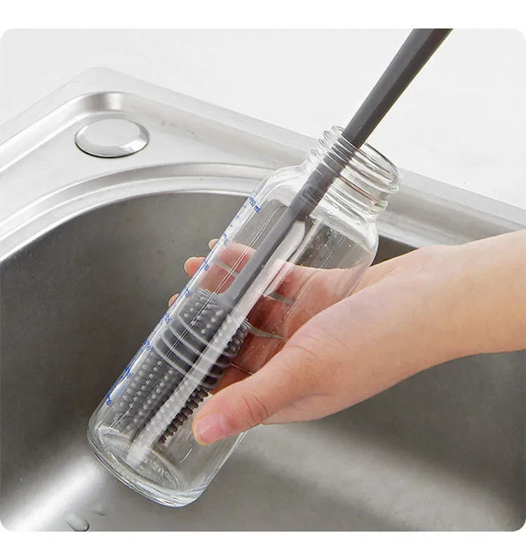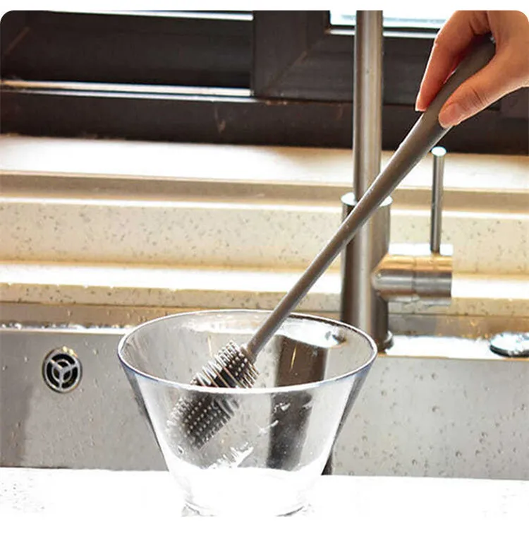 3.thin and long silicone brush is friendly to tall Smaller Diameter Bottle Openings containers.With its long handle and flexible silicone bristles,easy to scrub away stubborn grime from nooks and crannies.